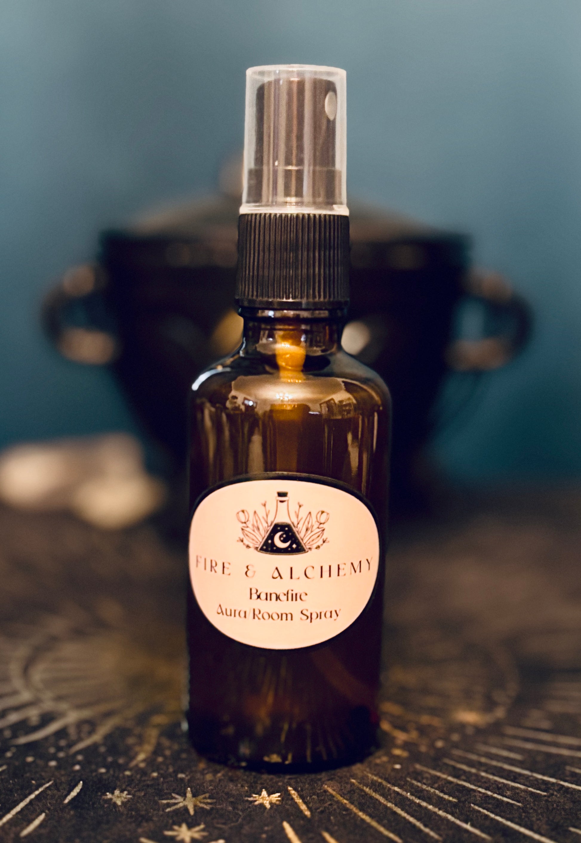 Summon your inner fire with Banefire — a sacred, spicy aura spray inspired by ritual smoke and renewal. Blended with cinnamon, clove, patchouli, sweet orange, frankincense, and myrrh, this mist burns away stagnant energy and ignites courage, strength, and clarity. Use it to clear your space, banish negativity, or charge your ritual tools with fierce protection.